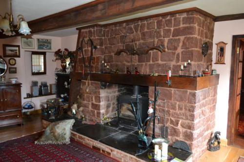 Stone built fireplace in